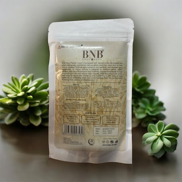 The BNB Rice Extract Face Mask is a carefully crafted, natural powder mask designed to brighten, purify, and revitalize the skin while maintaining optimal comfort and nourishment. Inspired by traditional skincare rituals and enhanced with modern brightening actives, this mask delivers a complete at-home facial experience.